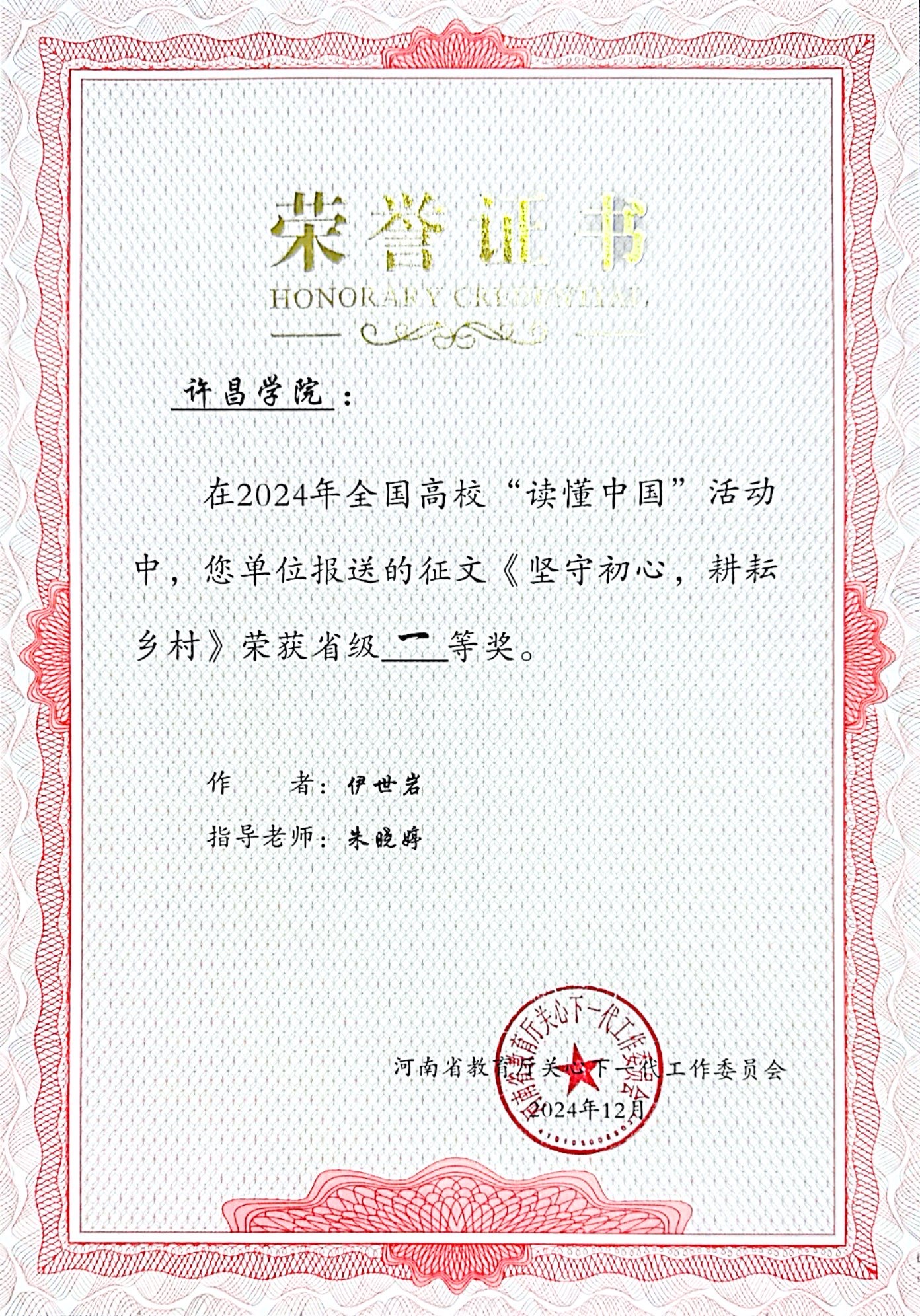 我院选送的五项作品全部获奖,其中省征文类作品获一等奖1项,校征文作品获一等奖2项,二等奖2项,我院朱晓婷老师、刘宇建老师获优秀指导老师,院关工委获评优秀组织奖。