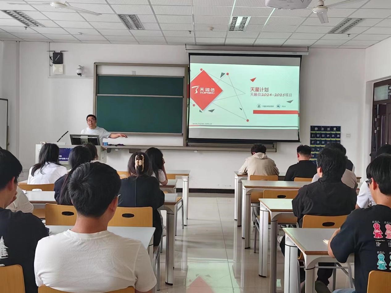 在第二场宣讲中,作为网络安全知名企业,天融信企业代表深入解读了云计算安全、工业物联网安全等前沿方向的技术架构,并展示了为不同安全细分领域定制的"技术能力图谱"。企业代表还介绍了渗透测试、安全编码等岗位所需的具体技术要求,激发了毕业生们对信息安全行业的探索热情。企业代表高度评价我院学子扎实的专业功底和突出的实战能力,鼓励我院毕业生积极投递简历。
