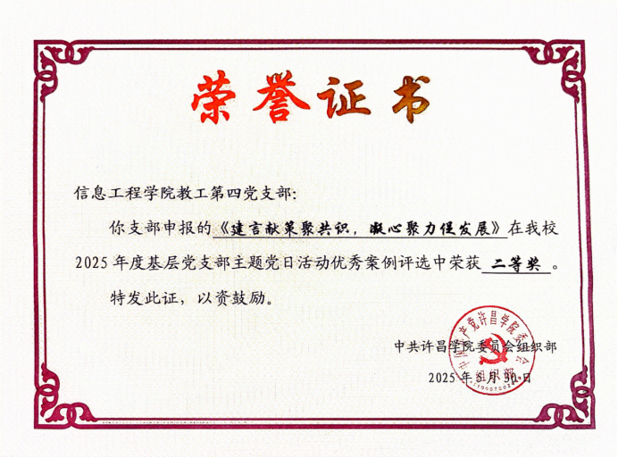 此次两党支部案例获奖,既是学校党委对学院基层党建工作的充分肯定,也为全院党支部提供了可借鉴、可推广的宝贵经验。下一步,学院党委将以此次评选为契机,进一步总结优秀案例经验,加强支部间交流学习,持续推动主题党日活动创新升级,不断提升基层党组织的组织力、凝聚力与战斗力,为学校各项事业高质量发展贡献更多“信息”力量。