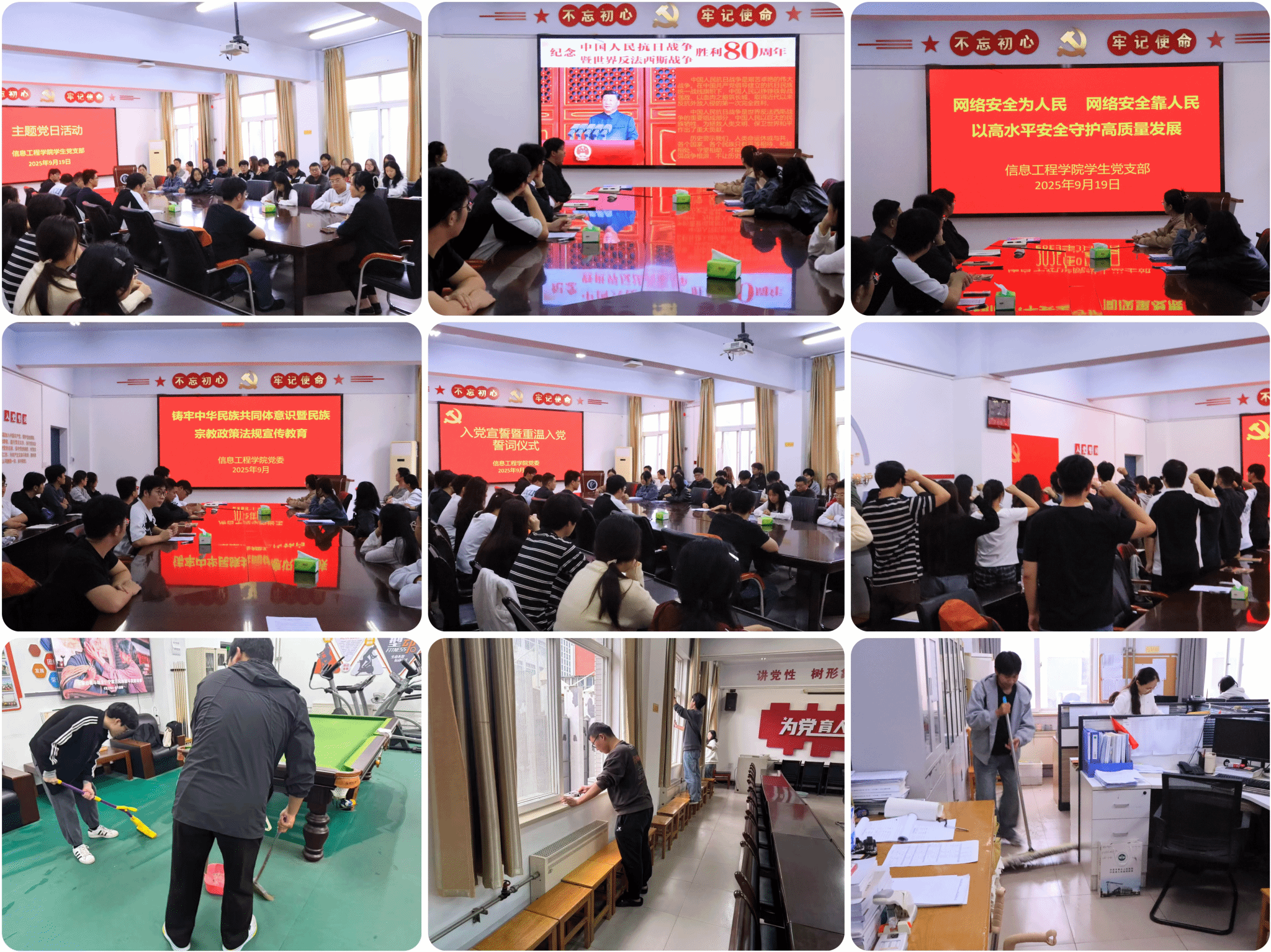 活动中,全体党员集中学习了三方面的内容:一是学习习近平总书记在纪念中国人民抗日战争暨世界反法西斯战争胜利80周年大会上的重要讲话,并结合历史影像感悟抗战精神时代内涵;二是围绕2025年国家网络安全宣传周主题,学习习近平总书记关于网络安全的重要指示,结合校园网络诈骗、数据保护案例研讨;三是通过政策解读、知识问答、学习民族宗教法律法规,理解铸牢中华民族共同体意识的意义。