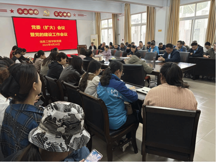 9 月 26 日下午,我院在信工楼 315 会议室召开党委(扩大)会议暨党的建设工作会议,学院党委副书记王晓霞主持会议,全体教职工参会。