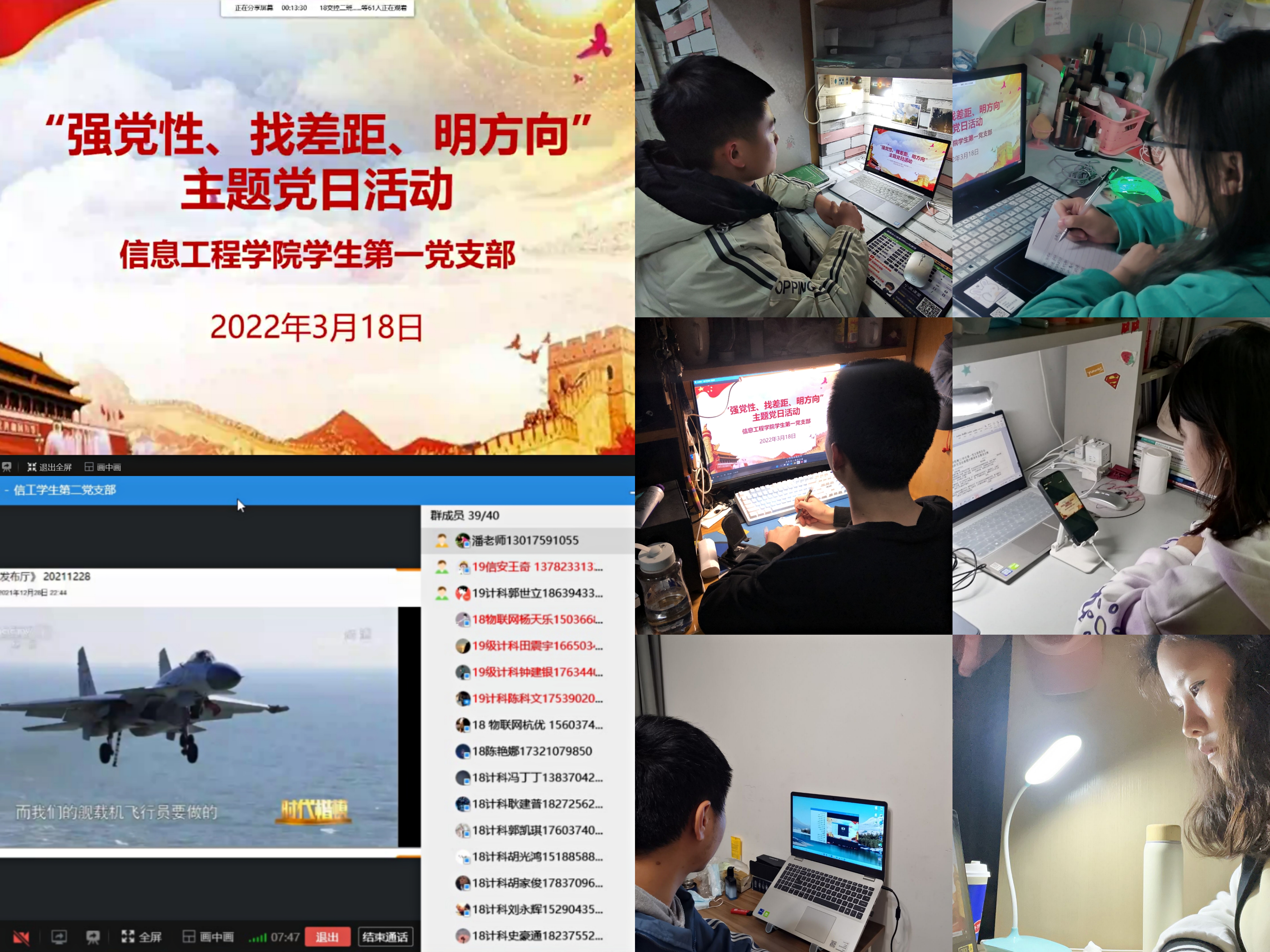 按照《信息工程学院关于召开2021年度党支部组织生活会和开展民主评议党员的方案》要求,我院学生党支部于3月18日晚开展“强党性、找差距、明方向”主题党日活动。采取线上形式组织学生党员进行会前集中学习并深入开展谈心谈话。全体学生党员参会,支部书记主持会议。