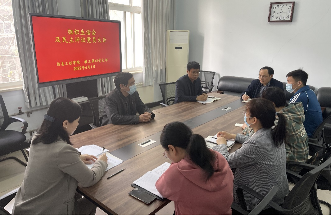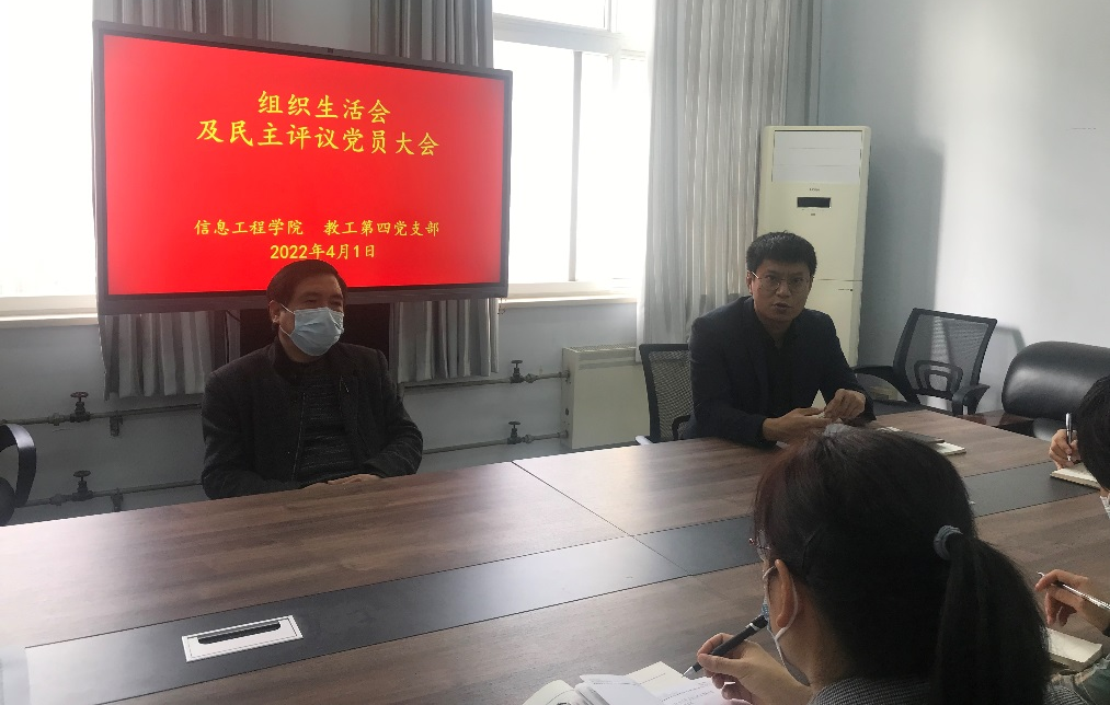 4月1日下午,教工第四党支部在信工楼308会议室召开2021年度组织生活会暨民主评议党员大会。党委书记张德喜同志出席指导工作,支部书记于妍同志主持会议。