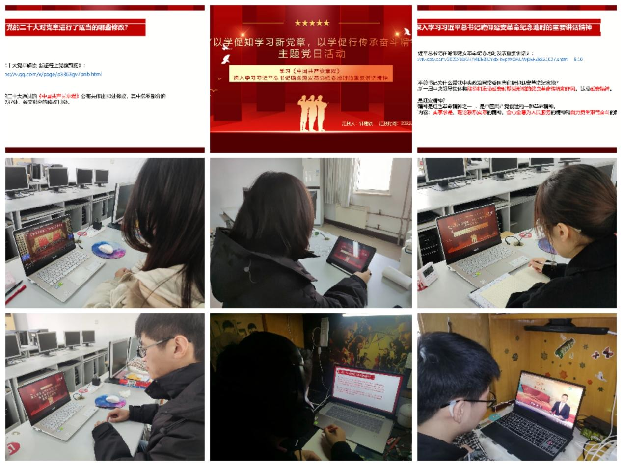 为深入学习贯彻党的二十大精神,深刻领会二十大新修订党章的各项规定要求和本质内涵,锤炼党性修养,弘扬伟大建党精神和延安精神,11月25日,我院学生党支部以“以学促知学习新党章,以学促行传承奋斗精神”为主题线上开展十一月份主题党日活动,全体党员参加。