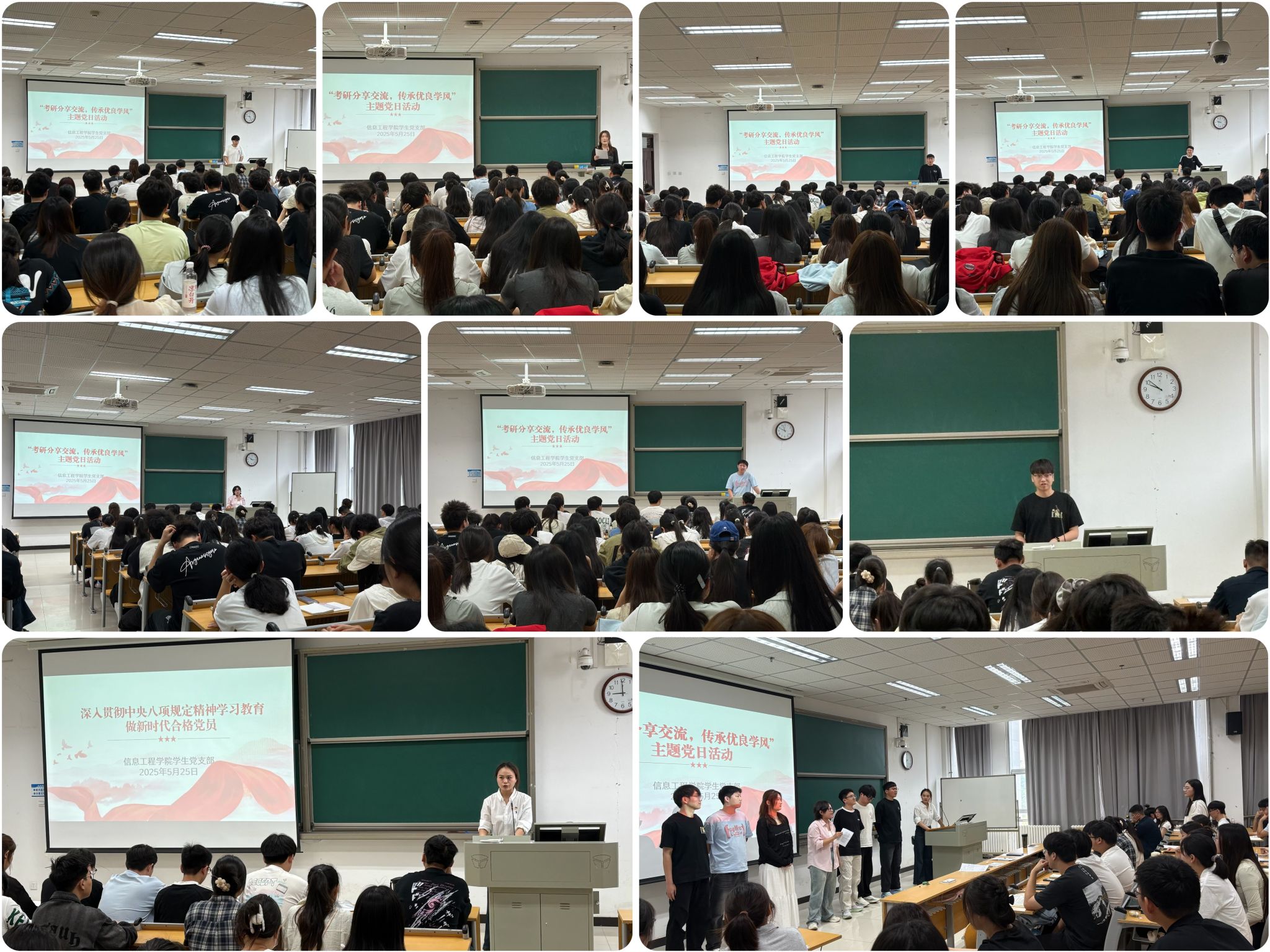 为加强党员思想教育,充分发挥优秀学子榜样力量,传承优良学风,5月25日上午,我院学生第一、二、三党支部在E309联合开展“考研分享交流,传承优良学风”主题党日活动。全体学生党员、入党积极分子代表共计150余人参加,活动由学生第三党支部副书记张桢老师主持。