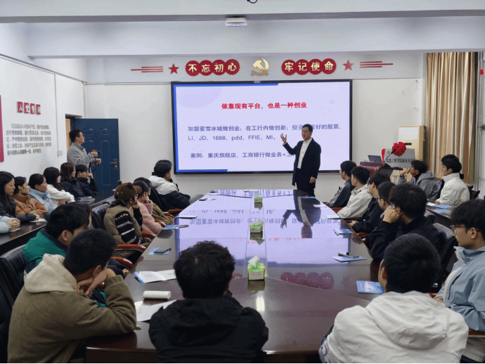 在优秀校友张祖源《创新驱动未来创业成就梦想》主题论坛上,支部党员认真聆听、主动思考。讨论环节,大家围绕职业规划、专业发展等话题与校友交流,并结合自身党员身份,进一步明确了“以专业立身、以实干担当”的成长方向,从校友经验分享中汲取奋进力量。