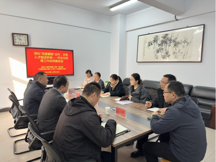 为深入学习贯彻党的二十届四中全会精神,推动党建与业务深度融合,12月19日,信息工程学院教工第一党支部与中国电信许昌分公司人力资源党支部联合开展了“党建翼联”主题党日活动,随后召开“深化‘党建翼联’合作,共筑人才输送桥梁——毕业生招聘工作协同推进会”。双方以党建为纽带,围绕以“联”促招、以“建”育人主题,共谋校企合作新路径,共商人才培养新机制。此次活动在信息工程学院308会议室举行,双方党员代表积极参与,现场气氛热烈、交流深入。