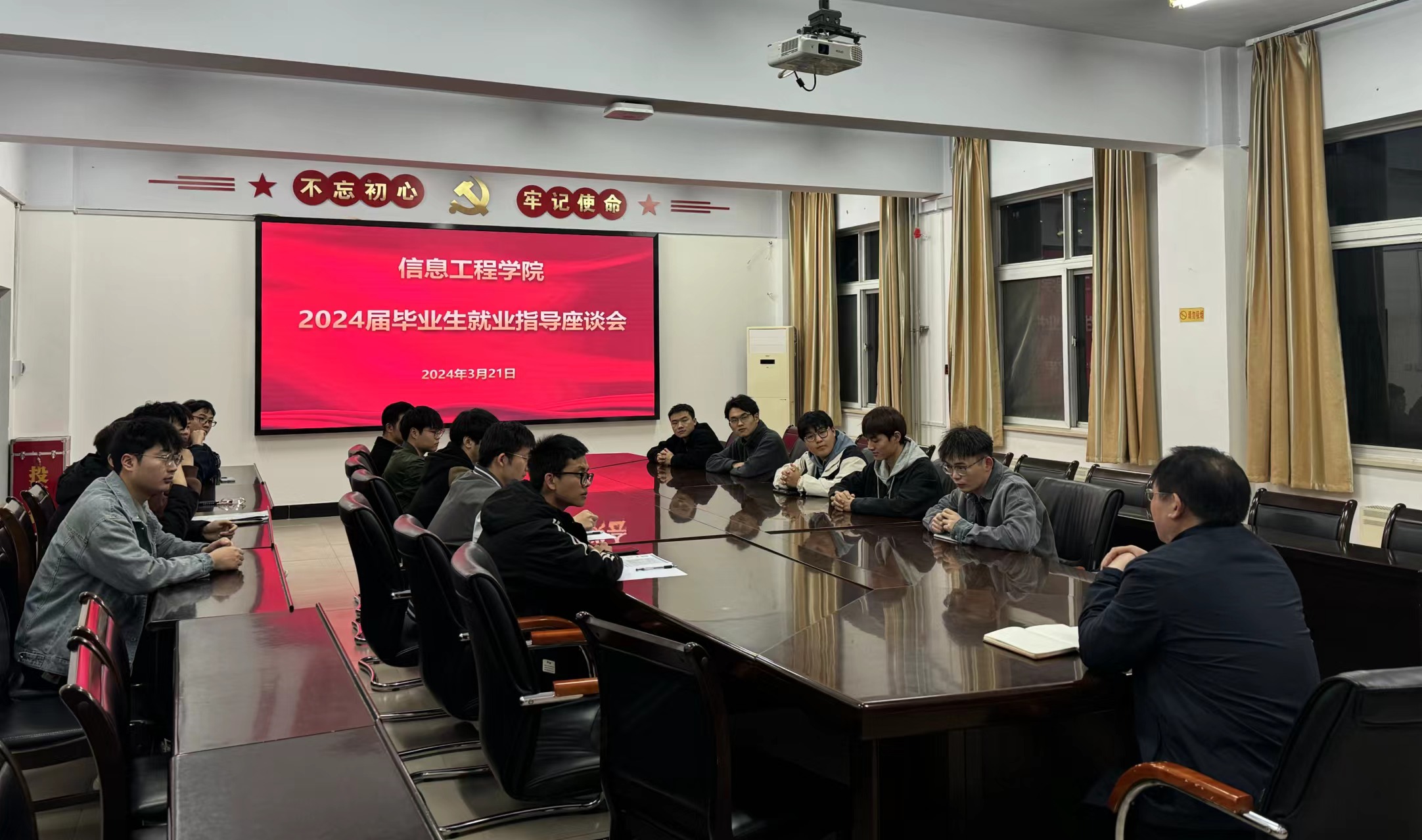 为有效推动2024届毕业生就业工作,提高毕业生就业质量,我院于2024年3月21日在信工楼315会议室举办了2024届毕业生就业指导座谈会,院长冯战申、就业专干潘琛及毕业生代表参加会议。