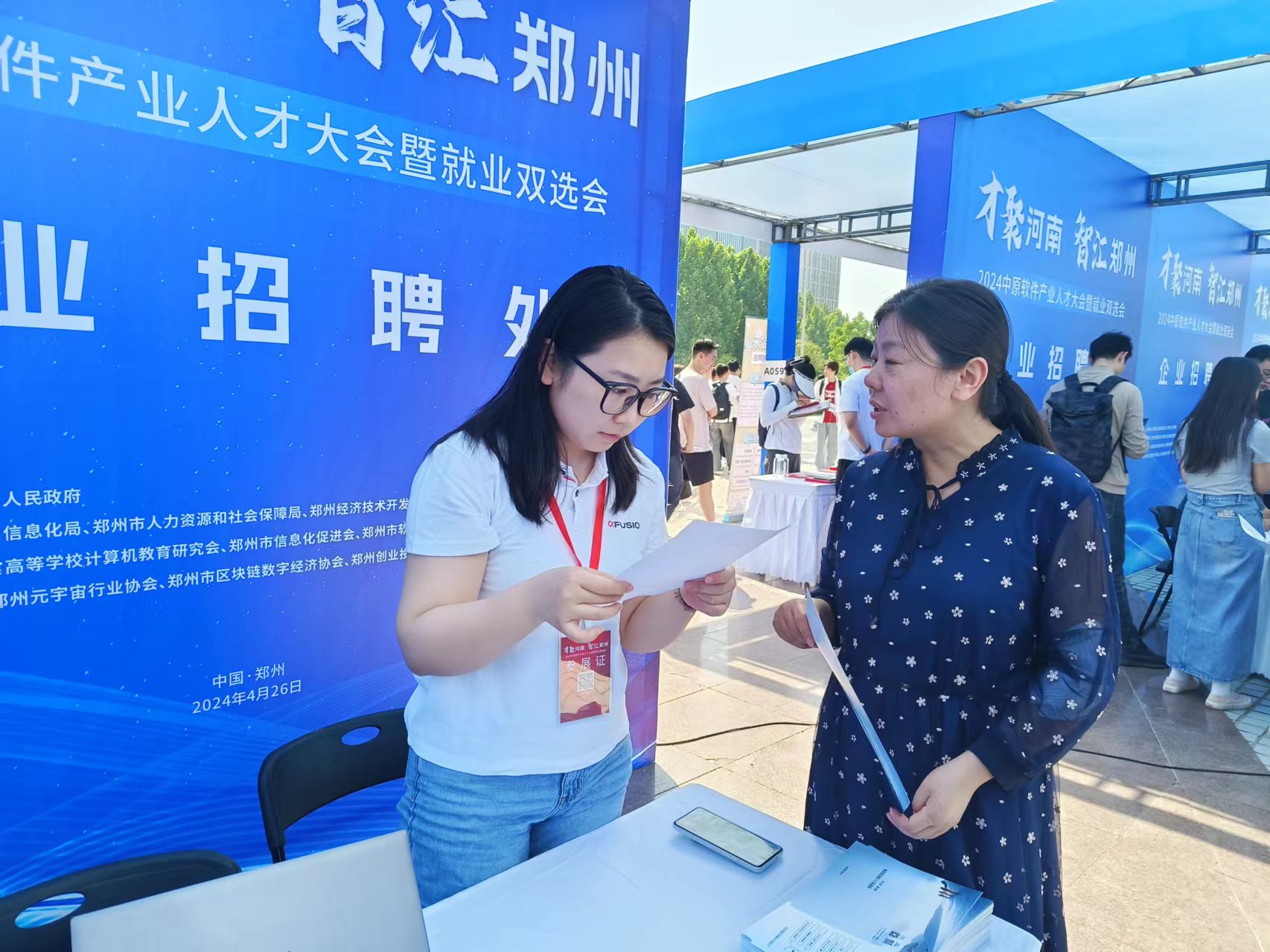 为贯彻落实教育部“访企拓岗促就业”专项行动和春季促就业攻坚行动,进一步深化校企合作交流,拓宽毕业生就业渠道和就业资源。4月26日,我院党委副书记王晓霞和副院长张玲带队前往郑州市经开区中心广场参加“2024中原软件产业人才大会”,并先后赴中国通信建设第四工程局有限公司、超聚变数字技术有限公司、普惠科技(河南)有限公司、郑州蓝创科技有限公司、河南方和信息科技有限公司等17家企业开展了调研和走访活动。