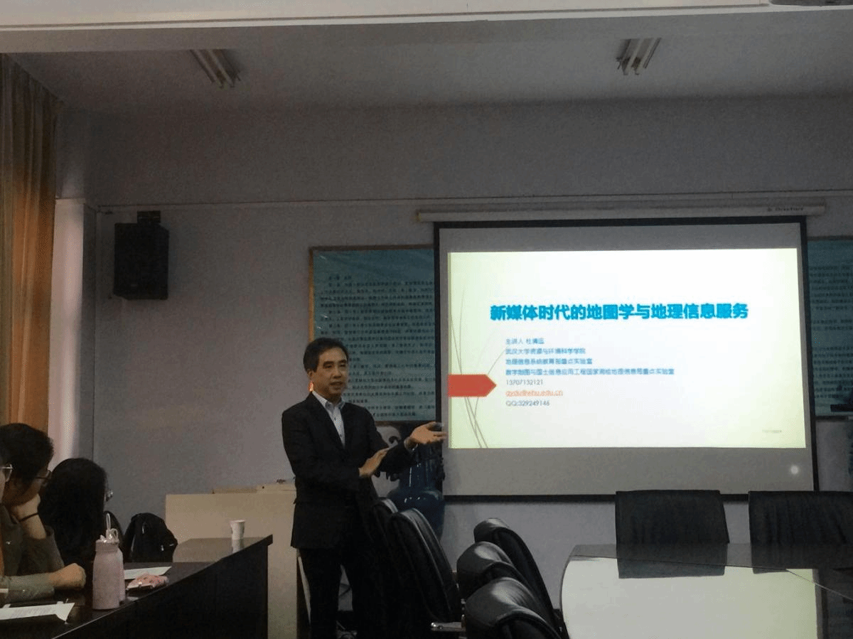 11月11日,武汉大学资源与环境科学学院院长、博士生导师杜清运教授应邀到我院作了题为《新媒体时代的智能地图与地理信息服务》的专题报告。信息工程学院专业教师、学生50余人听取报告。讲座由信息工程学院院长杜根远教授主持。