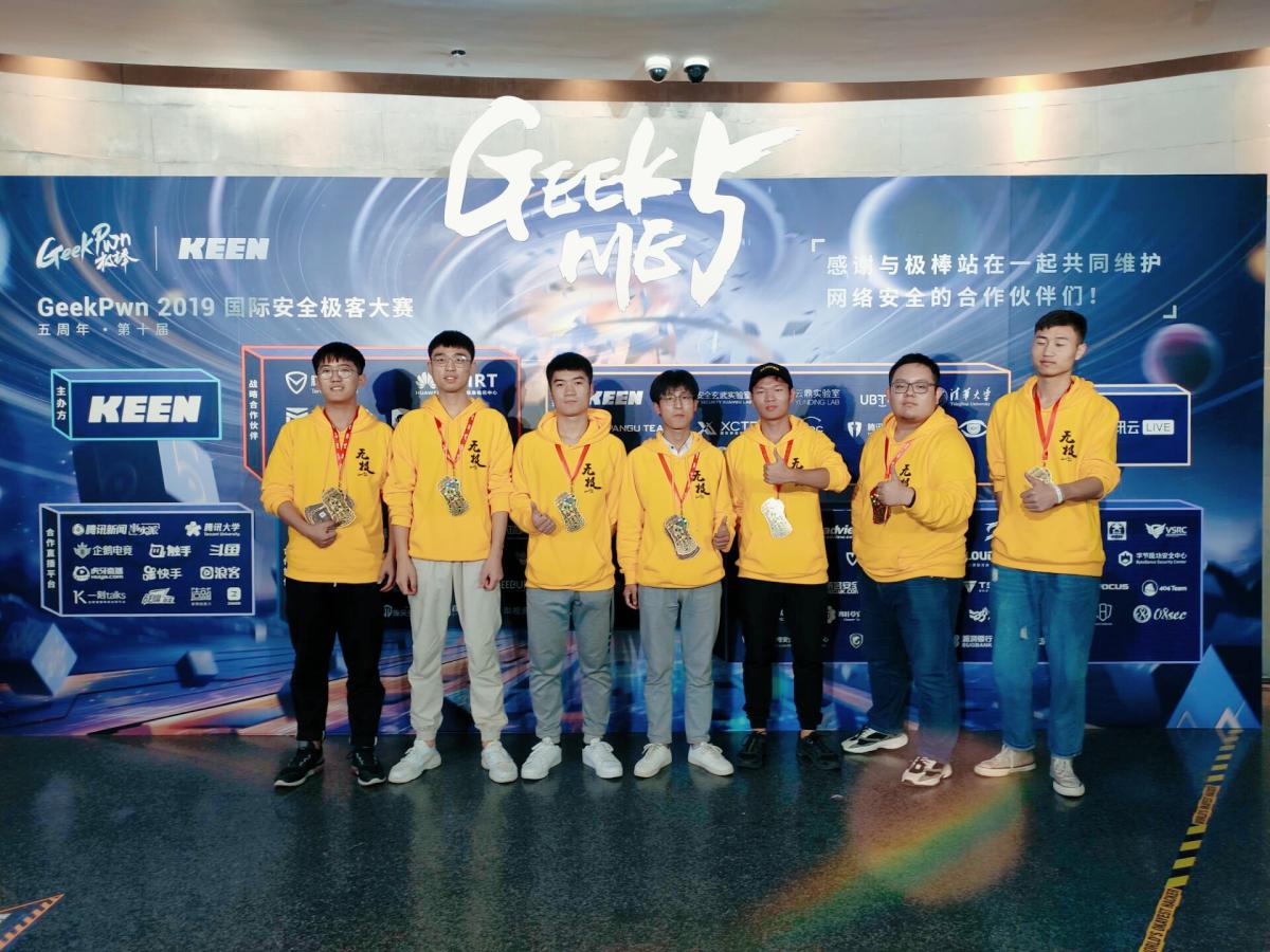 10月24日,以“Geek Me 5”为主题的2019年国际安全极客大赛(GeekPwn2019)在上海开幕,我院平源、马慧老师指导的由姜天赐、郑寅等7人组成的网络安全技术研发团队应邀参加技术交流活动。