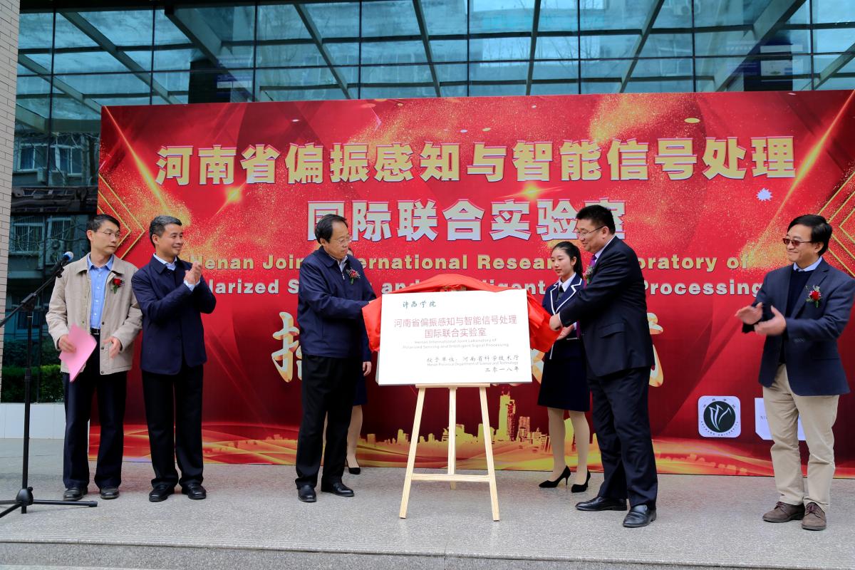 3月29日下午,我校举行河南省偏振感知与智能信号处理国际联合实验室揭牌仪式。河南省政协副主席张震宇,我校党委书记闫纪建、院长岳修峰、副院长郑直,中科院研究员杨瑞霞、副研究员刘玉,我校相关单位负责人共同参加了揭牌仪式。仪式由郑直副院长主持。