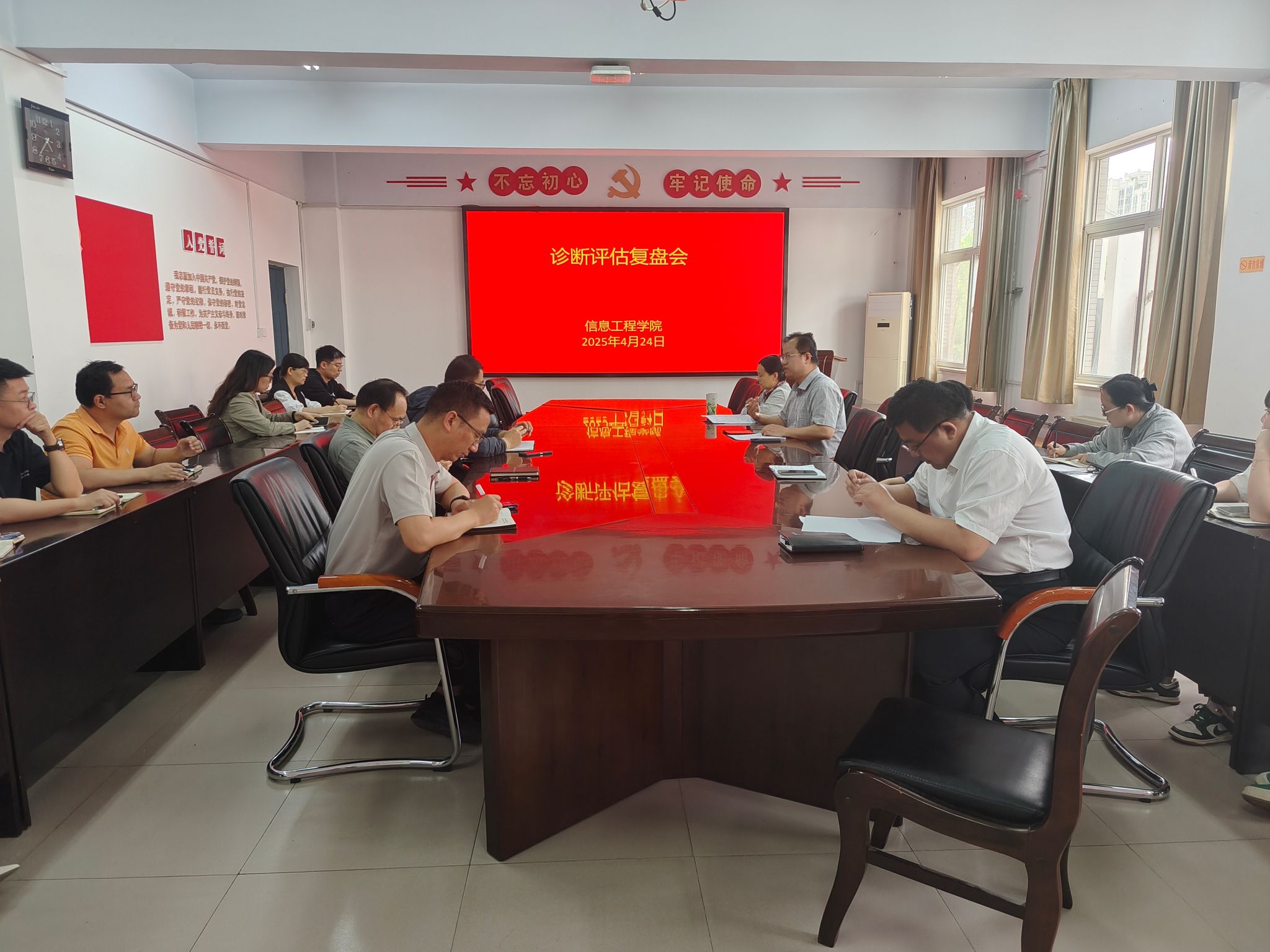 4月25日下午,信息工程学院召开了诊断评估复盘会,全面梳理总结前期诊断评估工作成效与经验,深入剖析存在的问题与不足,为后续工作高质量开展明确方向,凝聚共识。会议由副院长(主持工作)平源主持会议,副书记王晓霞、副院长田胜利、张玲等审核评估小组成员出席。
